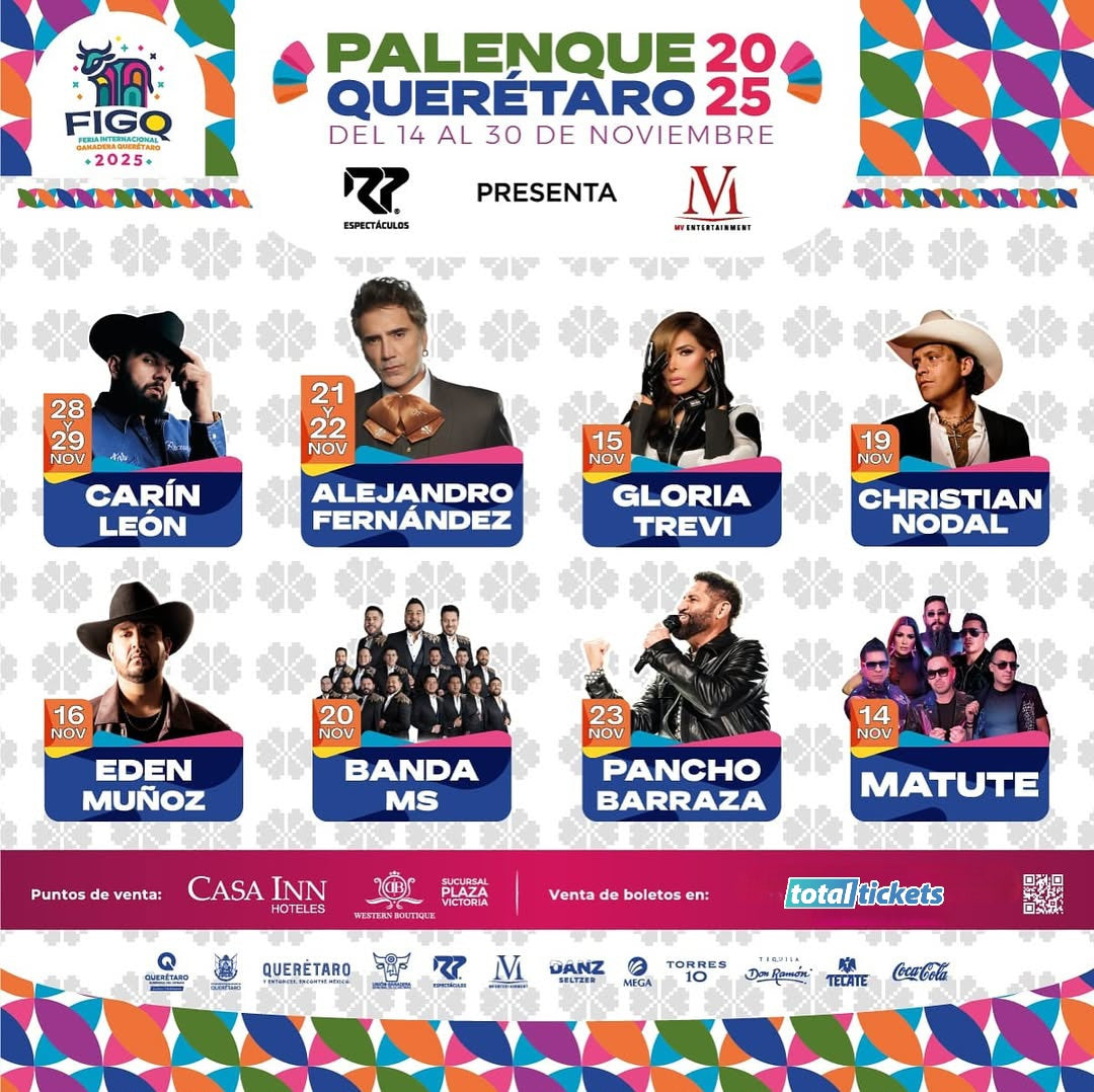 Todos los conciertos del Palenque Querétaro 2025 inician a las 8:00 p.m., aunque te recomendamos llegar con anticipación para evitar filas.
